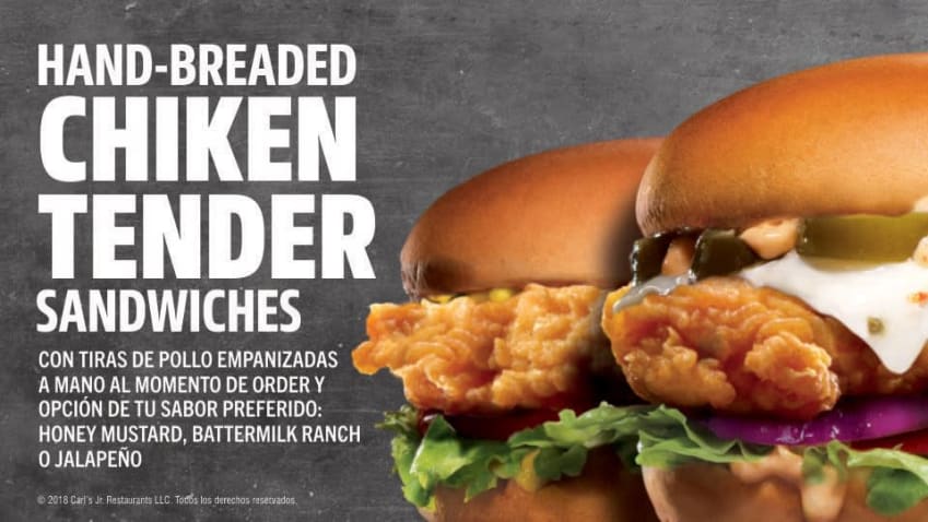- Hand-Breaded Buttermilk Ranch Chicken Tender Sandwich: Se prepara con dos tiras de pollo, salsa ranch, tomate y lechuga, en un bollo simple de 4”.