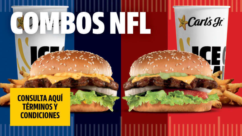 A partir del 1 de Octubre 2024 puedes disfrutar nuestra deliciosa nueva oferta en Restaurantes Carl’s Jr.® México, Combos NFL, Tú eliges: