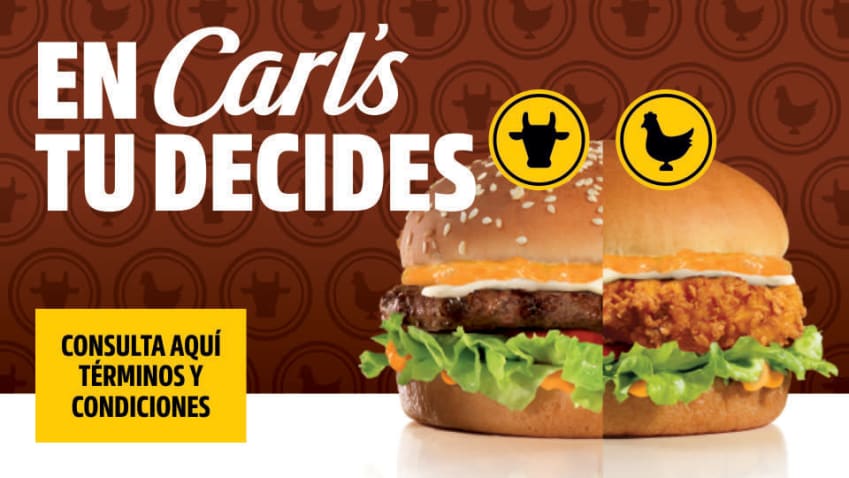 En Carl’s tu decides, a partir del 1 de Enero 2023 puedes disfrutar nuestra deliciosa nueva oferta en Restaurantes Carl’s Jr. ® México. Tú eliges: