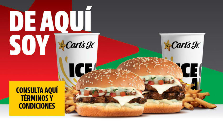 De aquí soy, a partir del 10 de Julio 2023 puedes disfrutar nuestra deliciosa nueva oferta en Restaurantes Carl’s Jr. ® México. Tú eliges: