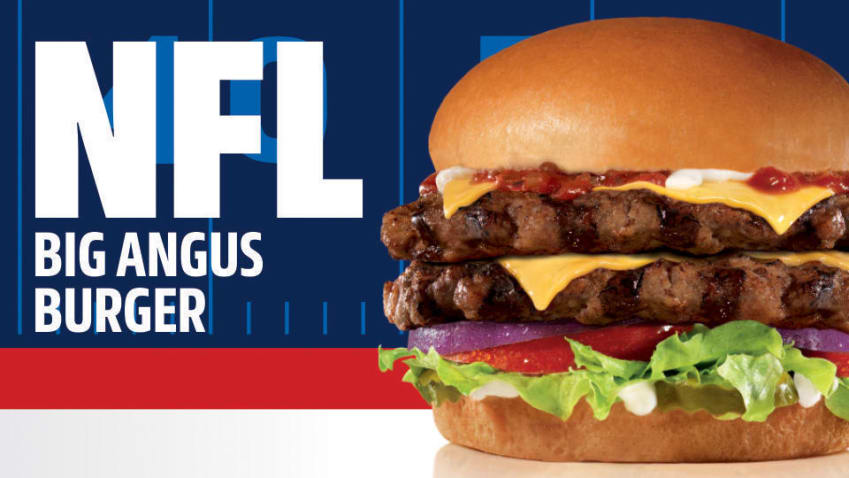 A partir del 1 de Diciembre 2021 disfruta de NFL Big Angus Burger con Dos piezas de carne 100% Black Angus, salsa especial, 2 rebanadas queso americano, mayonesa, lechuga, cebolla morada, tomate y pepinillos, la hacen una experiencia única disponible en todos los Restaurantes Carl´s Jr.® de México por tiempo limitado.